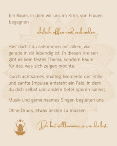 Hier darfst du ankommen mit allem, was gerade in dir lebendig ist. In diesen Kreisen gibt es kein festes Thema, sondern Raum für das, was sich zeigen möchte.